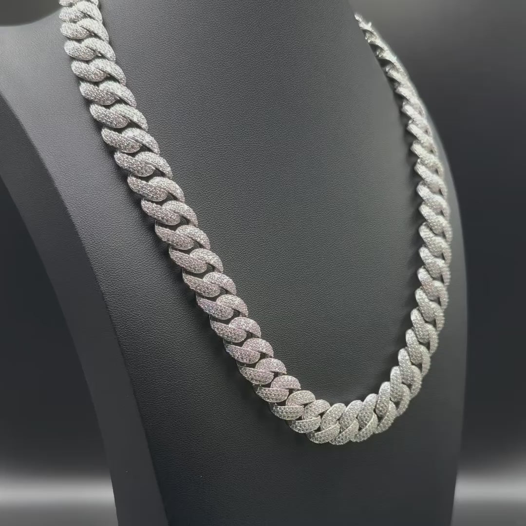 16MM Miami Cuban Chain – Moissanite – Sterling Silver