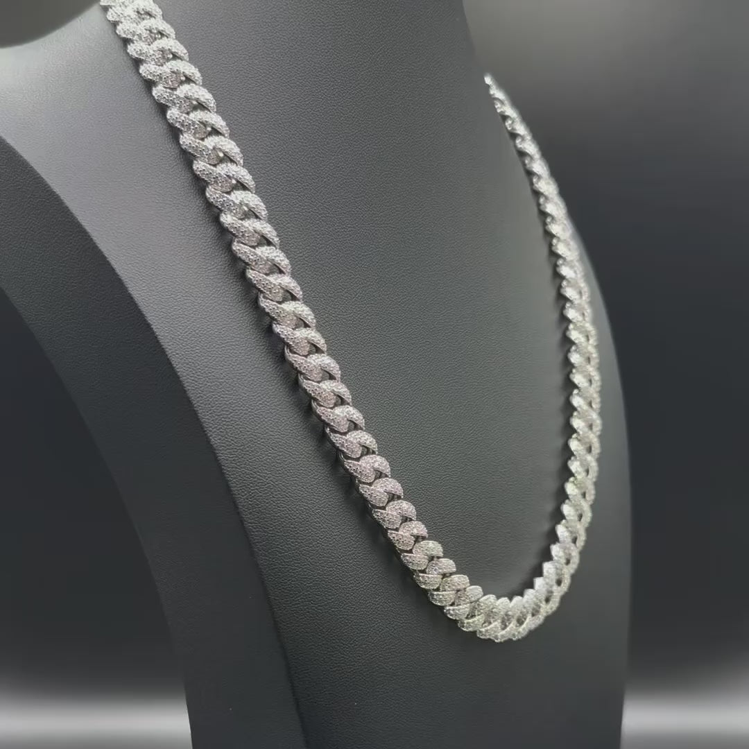 12MM Miami Cuban Chain – Moissanite – Sterling Silver