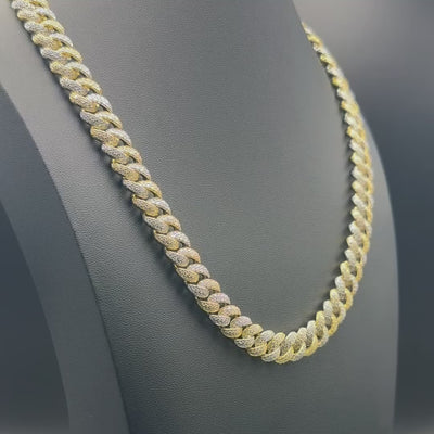 12MM Miami Cuban Chain – Moissanite – Two Tone Gold – Sterling Silver