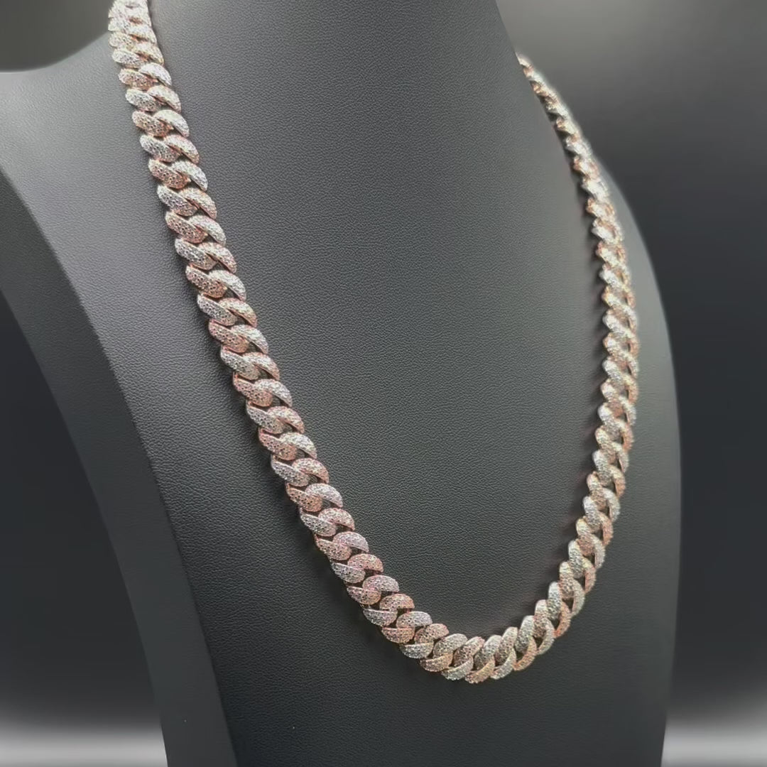 Luxury in dual form. The Prestige Two Tone Cuban Chain and Bracelet bring contrast and power together — where silver meets gold, or silver meets rose gold, in perfect balance. Each piece is crafted from solid 925 sterling silver, handset with VVS Moissanite stones that pass the diamond tester and shine with undeniable authority.